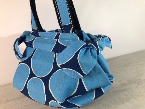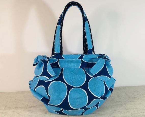 リボンが可愛い小さめシュパコンバック*ブルー系水玉大
